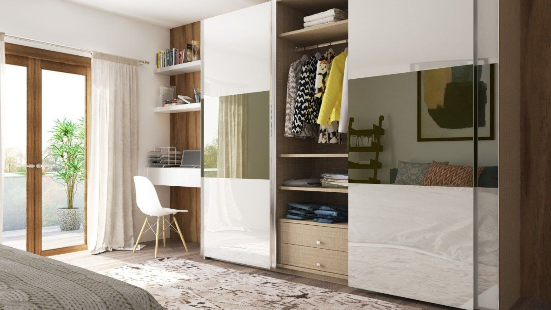 With options in glass, mirror, acrylic, laminate, or veneer finishes, our sliding wardrobes add depth and dimension to your interiors. Each unit is designed for smooth, noiseless operation and efficient storage organization, offering you the perfect blend of aesthetics and practicality.